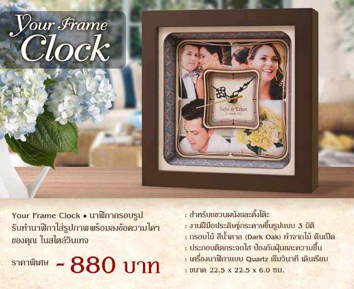 วันนี้หากคุณกำลังมีไอเดีย ที่จะนำรูปภาพที่บันทึกความทรงจำดีๆของคุณ ออกมารังสรรค์เป็นของขวัญของที่ระลึกสักชิ้น เราขอนำเสนอ Yr-Frame Clock นาฬิกากรอบรูปของ Sometimes ซึ่งมีให้เลือก 2 ขนาด ด้วยรูปแบบดีไซน์สไตล์วินเทจที่สวยงามเหมาะในการแต่งบ้าน มีสีสันและลวดลายให้เลือกหลากหลาย สามารถออกแบบจัดวางรูปถ่ายของคุณให้ได้อย่างลงตัว อีกทั้งยังเป็นงานฝีมือประดิษฐ์ที่มีความประณีตจึงเหมาะจะใช้มอบเป็นของขวัญ เพื่อสร้างความประทับใจให้กับคนพิเศษของคุณ ในโอกาสสำคัญต่างๆ ไม่ว่าจะเป็น วันเกิด, ของขวัญแต่งงาน วาเลนไทน์, ปีใหม่, รับปริญญา, ของที่ระลึกงานเกษียณฯ หรืออื่น
